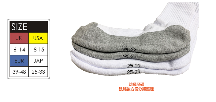 (25-33cm) 運動優質厚棉襪, 彈性特强, 每個長度單色是3對1包, 可選3包共9對, 自由選擇長度及顏色 (短 / 中 / 長 & 黑 / 白 / 灰三色)